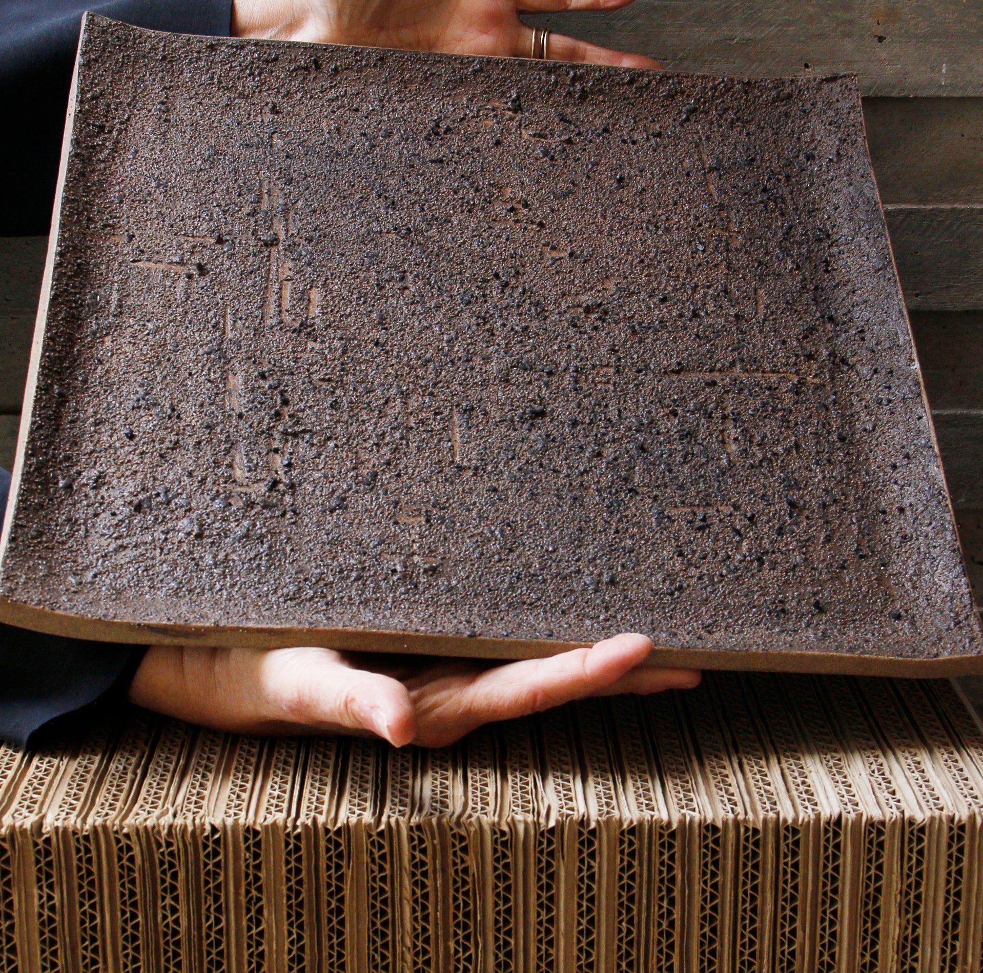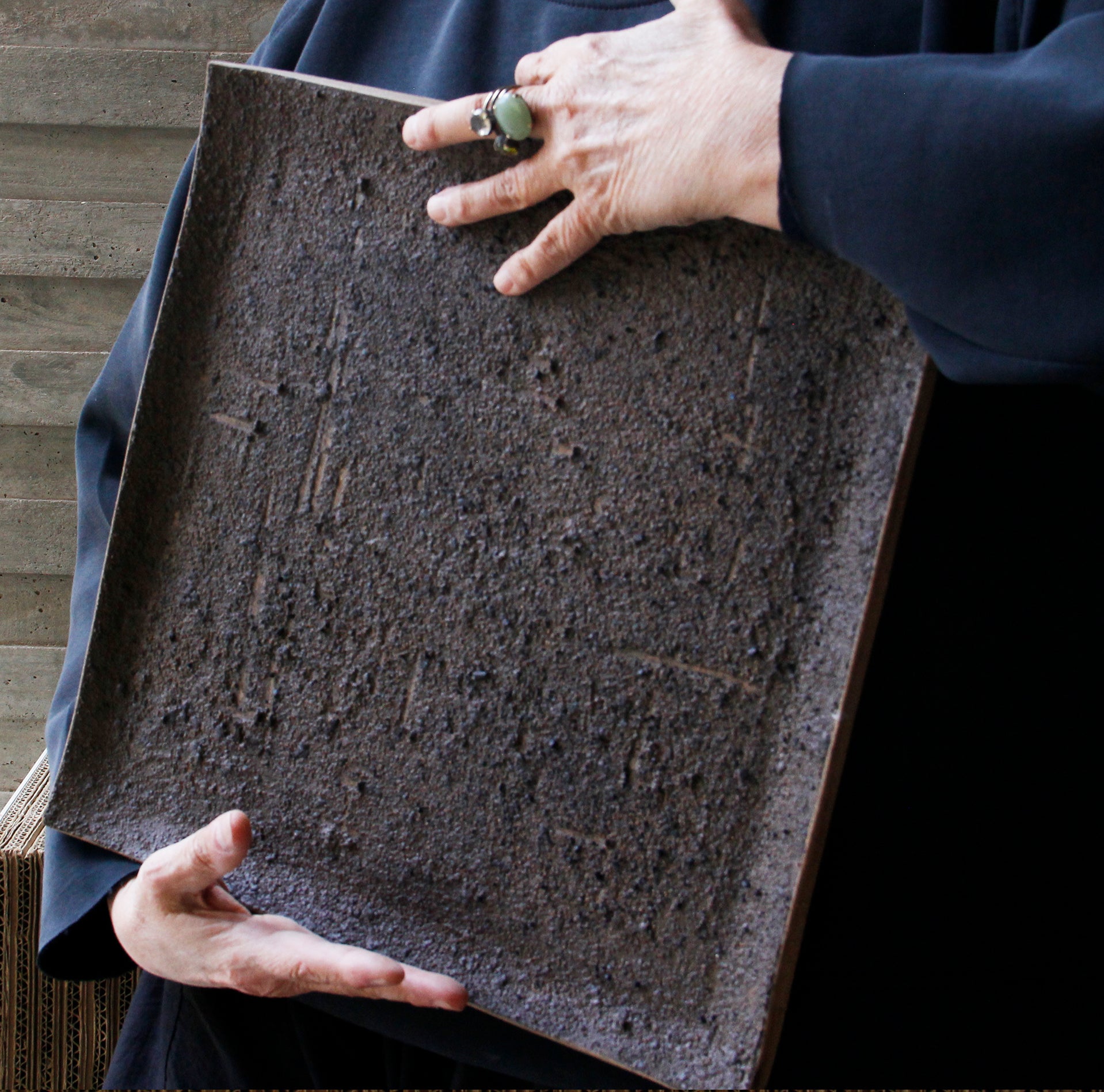 plural e resistente, o vaso de superfície texturizada com minerais tem acabamento orgânico.