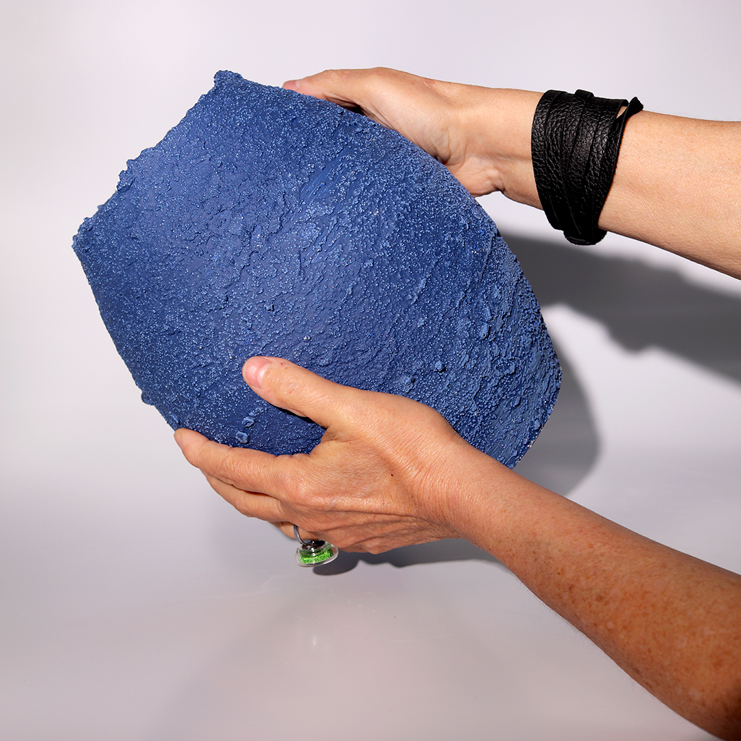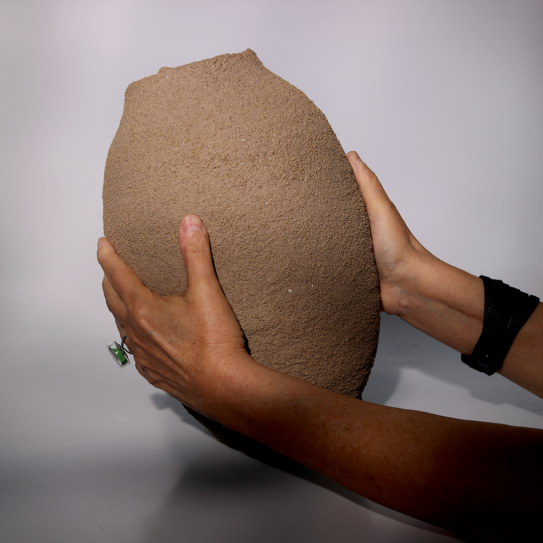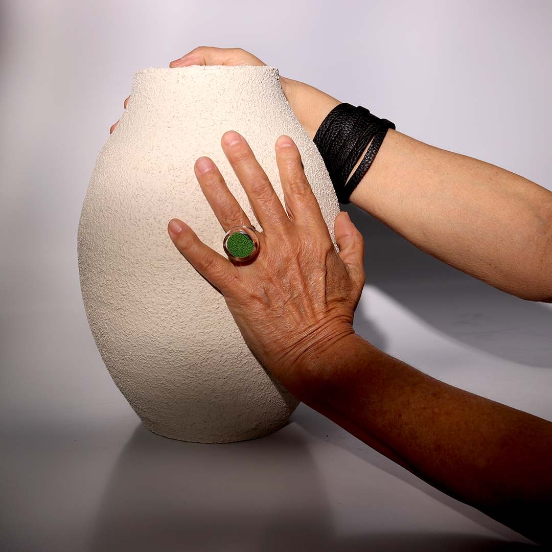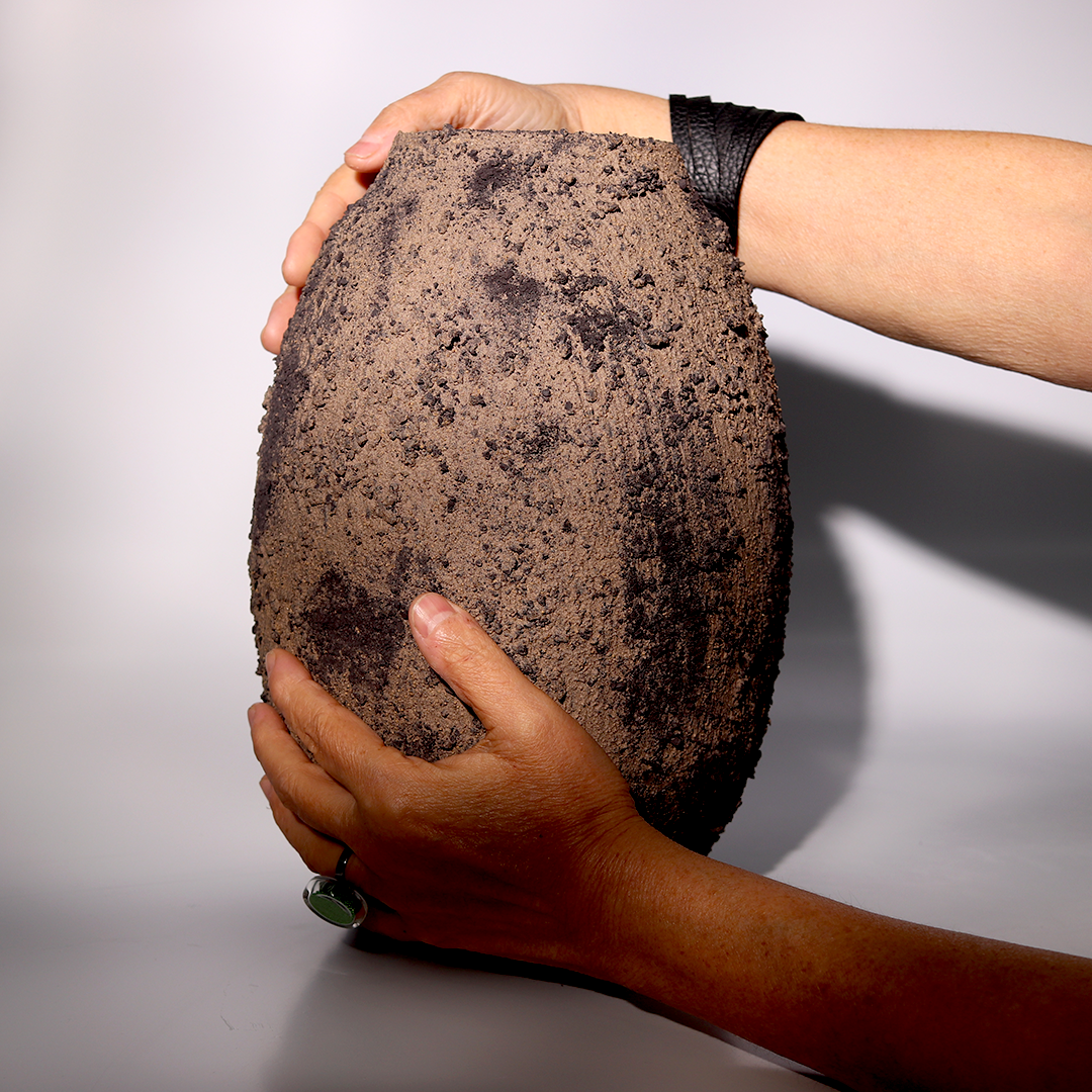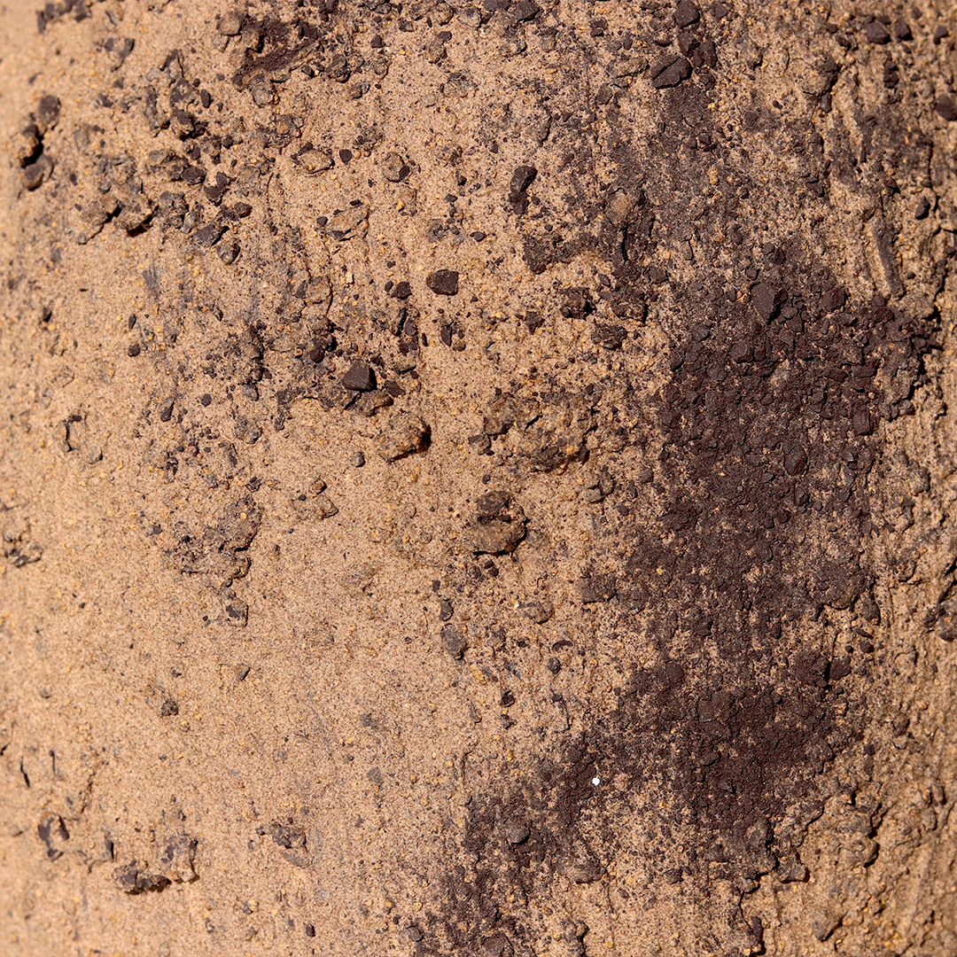 plural e resistente, o vaso texturizado com minerais tem acabamento orgânico.